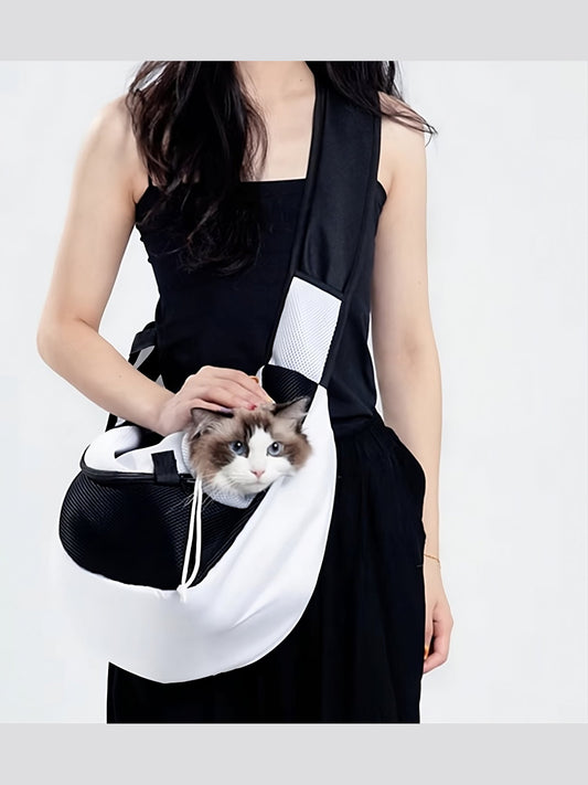 Elegant Crossbody Mesh Pet Sling Carrier with Adjustable Strap
