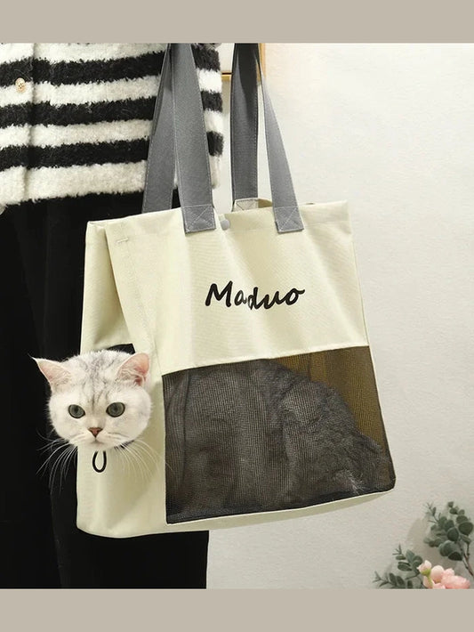 Stylish Mesh Pet Carrier Tote Bag with Breathable Design